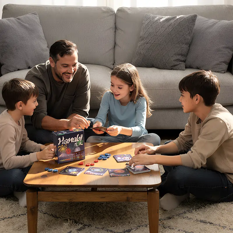 Jucând Hanabi cu copiii mei, serile noastre au devenit mult mai distractive. Am râs, am împărtășit idei și am lucrat împreună pentru victorie de fiecare dată.