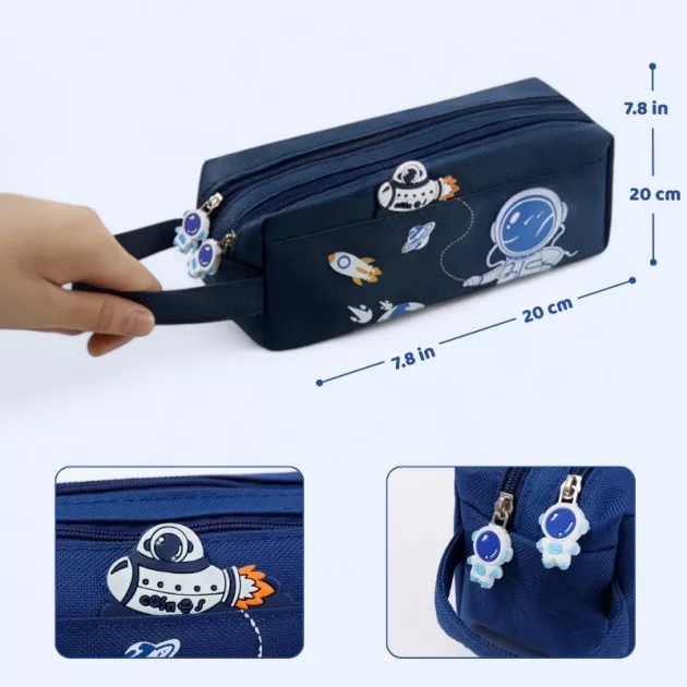 Fiul meu adoră designul cu spațiu și fermoarul drăguț. Acum găsește ușor marker-ele înainte de ora de arte. Este super organizat!