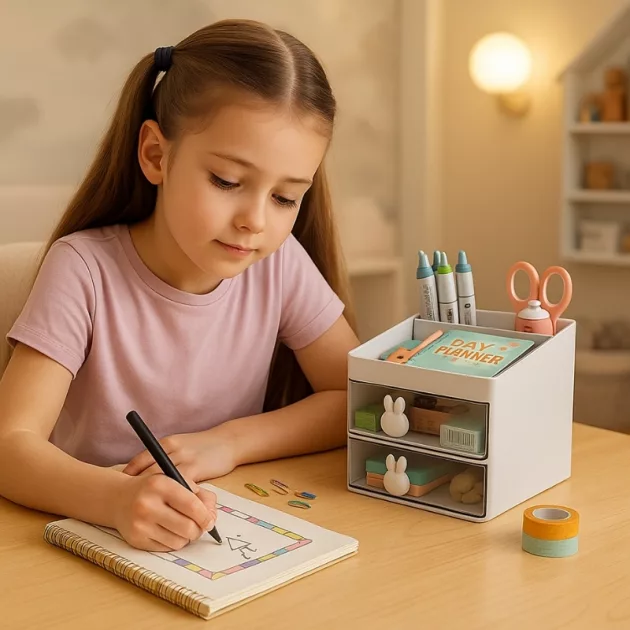 Transformă dezordinea zilnică într-un spațiu liniștit pentru minți creative. Culorile vii și sertarele ingenioase încurajează obiceiuri ordonate în fiecare zi. Găsești ușor orice stilou, pensulă sau notiță exact când ai nevoie. Oferă copiilor mai mult timp pentru distracție și mai puțin timp căutând.