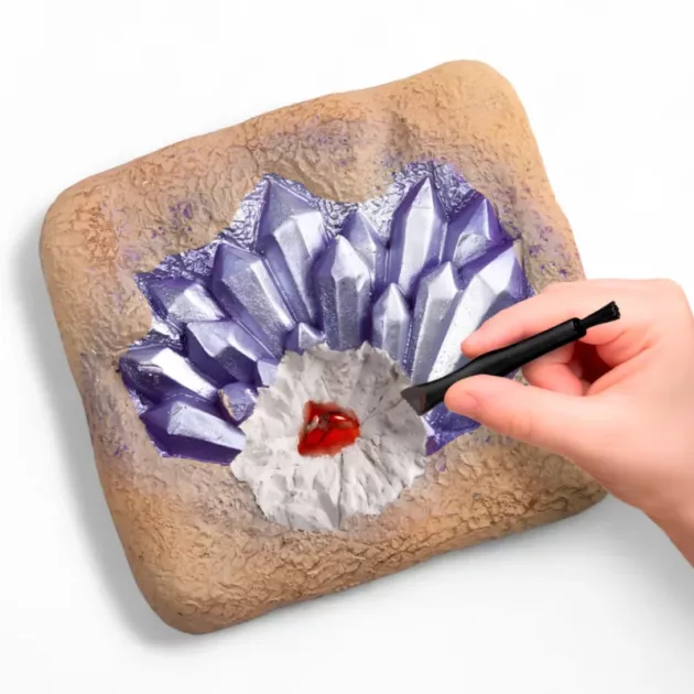 Aventură Practică - Copiii folosesc uneltele incluse pentru a extrage cu grijă cristale autentice. Se bucură de emoția unei descoperiri reale, făcând învățarea memorabilă.