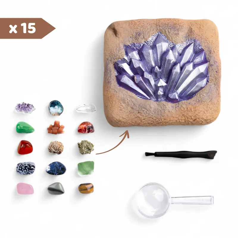 Descoperă minunile ascunse și trezește fascinația la fiecare săpătură. Fiecare excavare dezvăluie cristale frumoase, încurajând explorarea și învățarea practică. Fiecare piatră prețioasă găsită crește încrederea, inspirând un interes sporit pentru știință. Privește cum entuziasmul crește, iar cunoașterea și creativitatea înfloresc împreună.