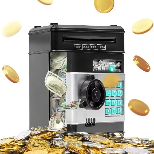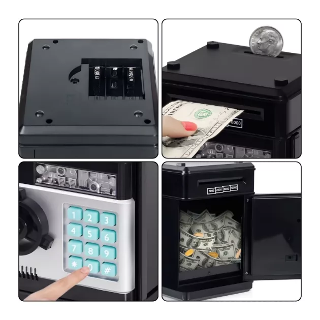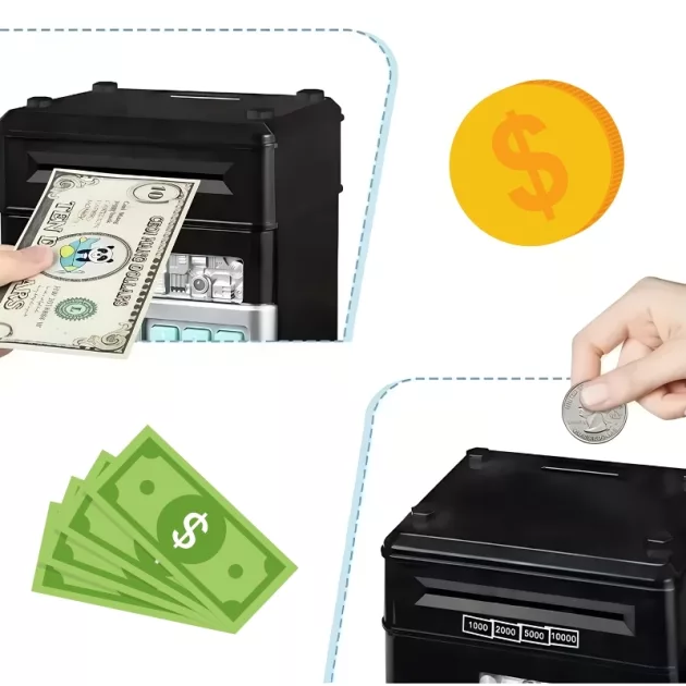 Distracție grozavă pentru băiețelul meu! Îi place să își ascundă monedele și bancnotele și să folosească codul special.