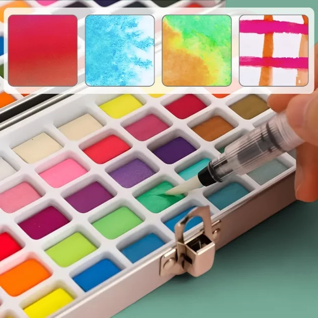 Am cumpărat acest set de acuarele pentru ziua fiului meu. Îl ia peste tot pentru că este ușor și încape în ghiozdan.