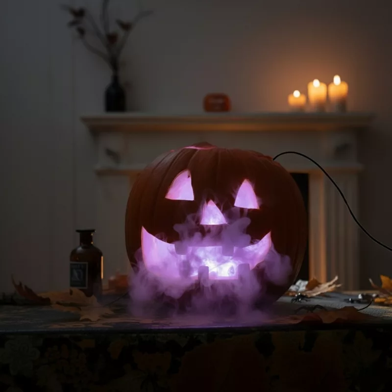 Am pus dovleacul luminat la fereastră și a fost atracția pentru colindători. Fără mizerie, doar efecte de groază excelente!
