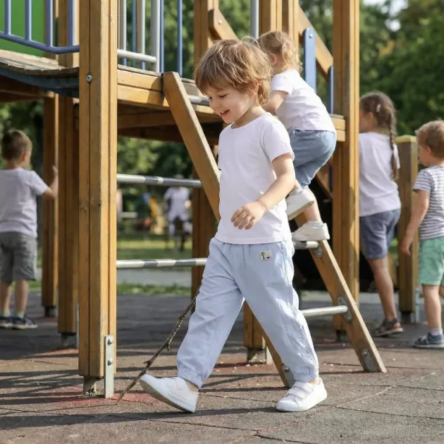 Copiii se pot bucura de libertate de mișcare la fiecare activitate. Bumbacul respirabil îi menține proaspeți toată ziua. Manșetele elastice practice previn târârea sau împiedicarea. Acești pantaloni stilizați fac îmbrăcarea ușoară de fiecare dată.
