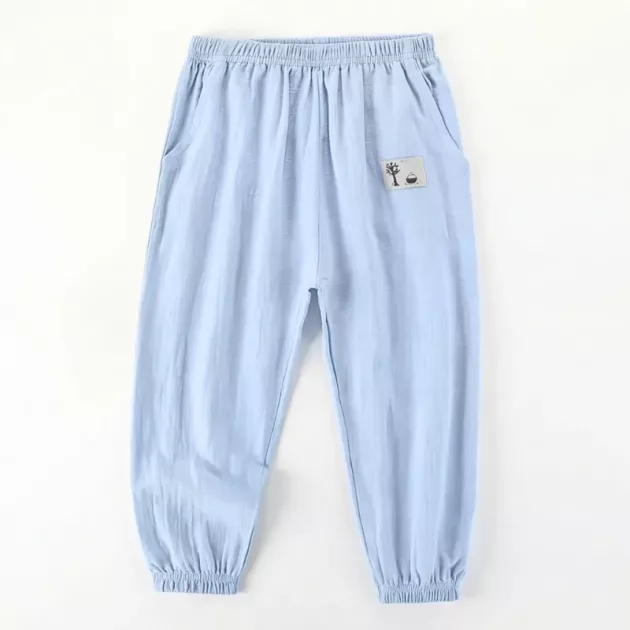 Pantaloni de vară largi și ușori din bumbac cu manșete elastice pentru copii