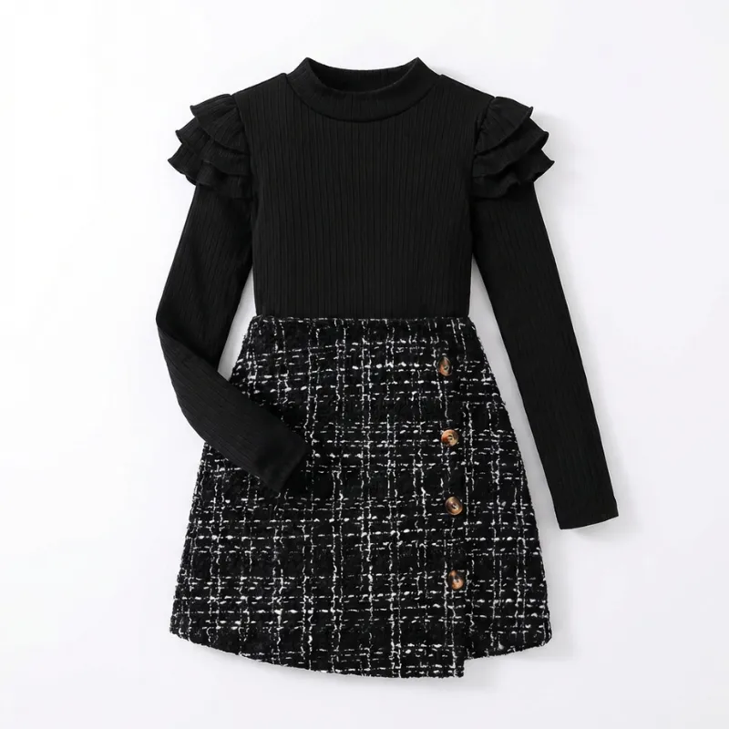 Fusta în carouri are un aspect clasic pe care îl ador, iar culoarea rezistă la spălat. Copilul meu se mișcă liber în acest set confortabil.