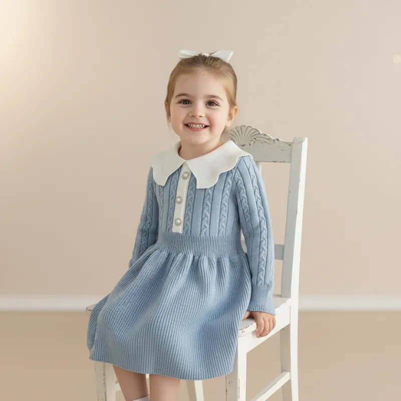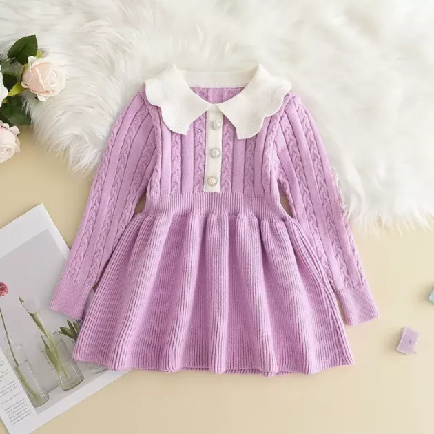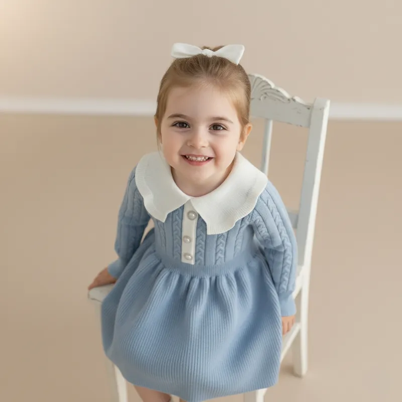 Diminețile răcoroase au nevoie de soluții elegante pentru cei mici jucăuși. Această rochie tricotată fermecătoare oferă confort și un aspect plăcut în orice sezon. Textura sa moale îi păstrează pe copii fericiți atât în interior, cât și afară. Părinții au liniște știind că celor mici nu le va fi frig niciodată.