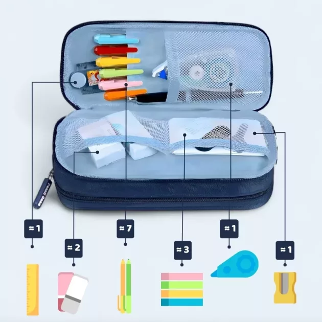 Dimineți fără stres - Straturile multiple fac ca fiecare pix sau radieră să fie ușor de găsit. Ambalarea este rapidă, astfel încât copilul tău este mereu organizat.