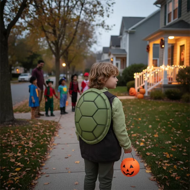 Fiul meu nu a mai fost niciodată atât de entuziasmat să se costumeze. A început să inventeze jocuri din momentul în care a pus carapacea. Este foarte distractiv de privit.