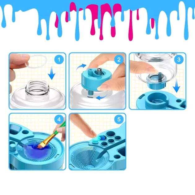 Copilul meu îl adoră! Îi păstrează toate pensulele curate și gata pentru următoarea capodoperă. Fără mai multă clătire dezordonată!