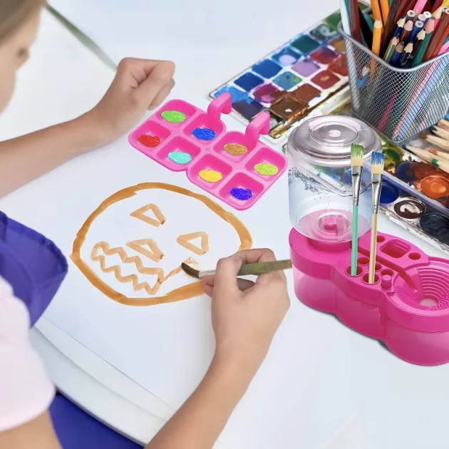 Sistem de autocurățare - Mecanismul integrat elimină rapid reziduurile. Procesul automatizat economisește timp, astfel încât copiii să se poată concentra pe operele lor de artă, nu pe frecat. Nu e nevoie de substanțe chimice agresive, reducând expunerea la substanțe dăunătoare. Acest lucru prelungește viața pensulelor și asigură rezultate constant vii.