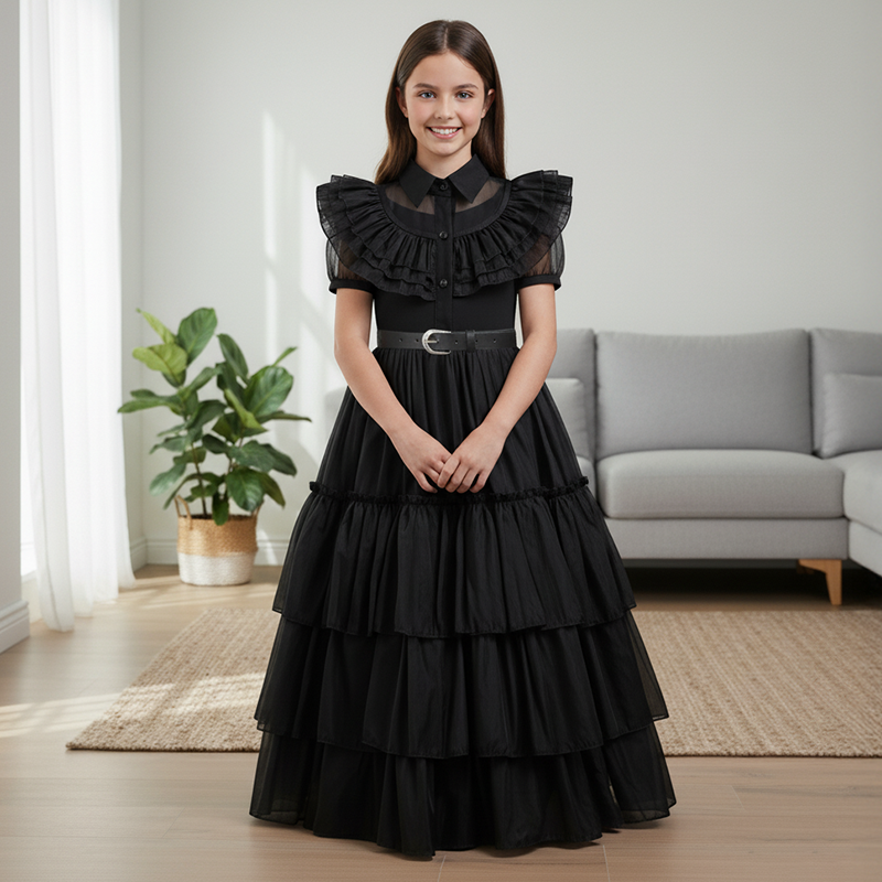 Fiica mea a iubit rochia ei neagră! S-a învârtit toată după-amiaza și nu s-a plâns deloc. Foarte moale și i-a făcut petrecerea și mai specială.
