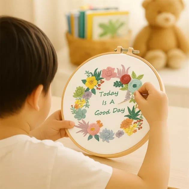Concentrare fără ecrane - Mâinile sunt ocupate, mintea este pe deplin implicată, iar atenția se întărește în mod natural. Timpul petrecut cusând ajută la reducerea stresului și încurajează dezvoltarea motorie.