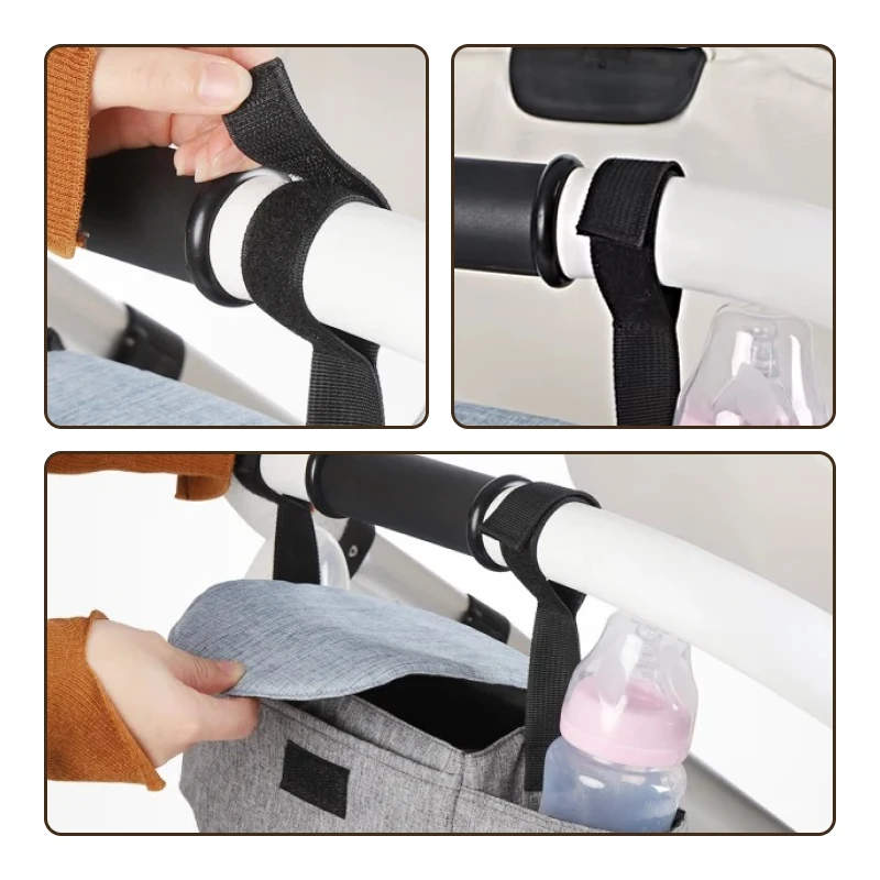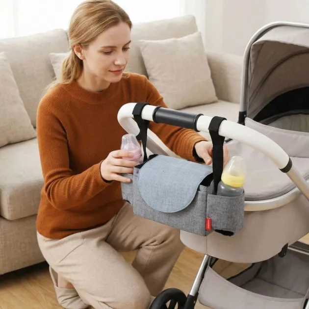 Minunat pentru a ține biberoanele în poziție verticală și pentru a nu mai pierde suzetele. Obișnuiam să scormonesc prin vechea mea geantă, dar acum nu mai e cazul! Plimbările sunt mult mai relaxante acum.