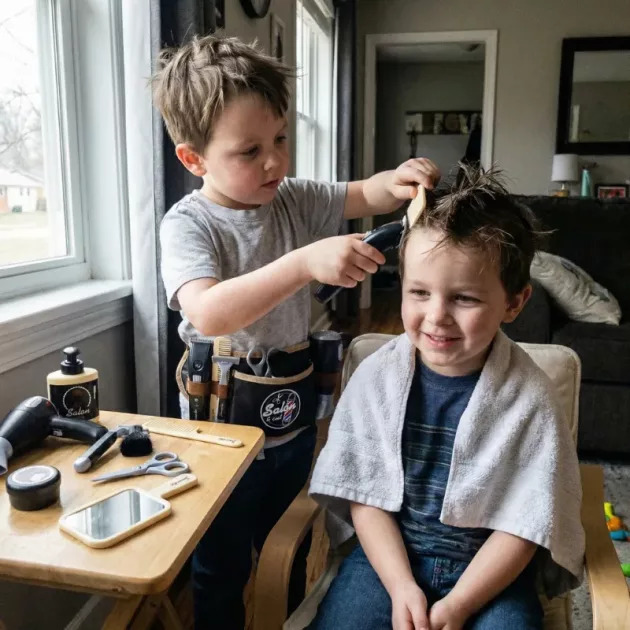 Setul de jucărie a fost un succes la petrecerea de ziua fiului meu. Toți au vrut o „tunsoare” și au inventat povești haioase despre noile lor coafuri.