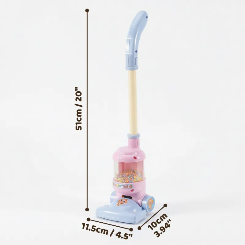 Copilul meu mic „curăță” mândru lângă mine cu acest mic aspirator. Luminile și biluțele îi mențin atenția în timp ce învață să ajute prin casă.