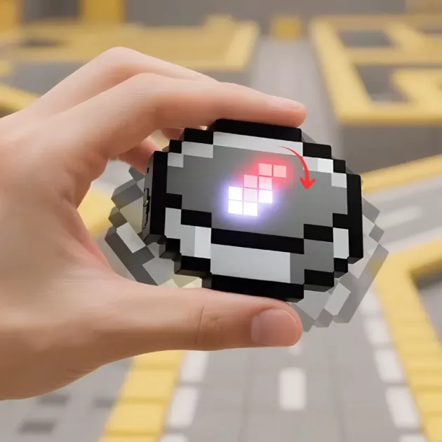 Arată super drăguț în stil pixel art! Îl am pe rucsac și fratele meu mai mic vrea și el unul. Îmi place că nu trebuie să cumpăr baterii pentru el.