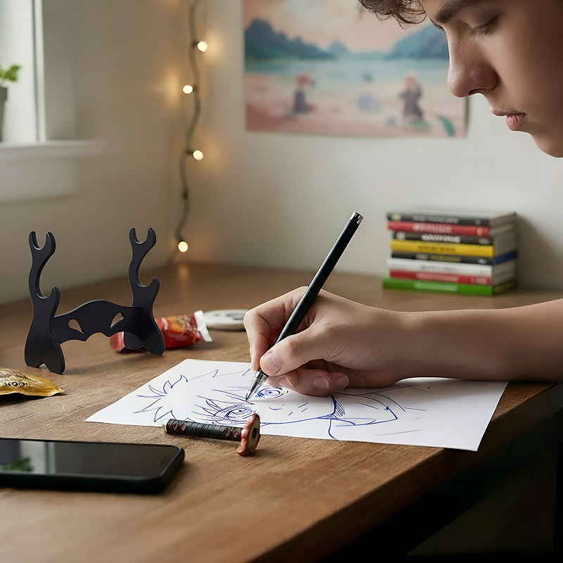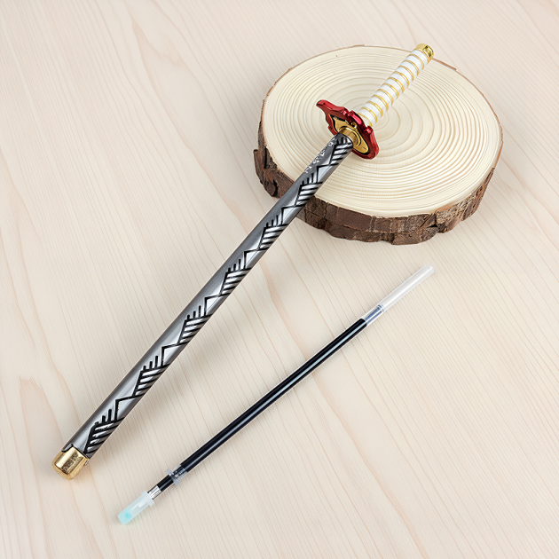 Suportul de pix în formă de katana îi păstrează biroul fiicei mele atât de ordonat. Îi place să-și expună pixul special chiar lângă caietele ei.