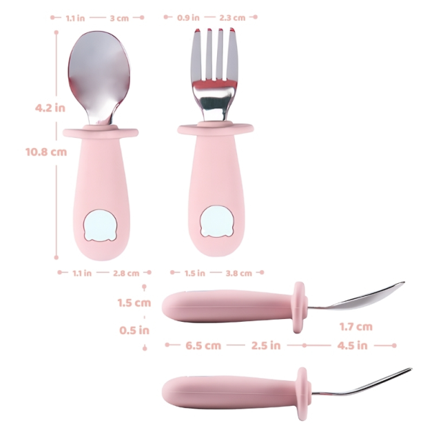 Încurajați-vă copilul să folosească tacâmurile în timpul meselor cu setul de lingură și furculiță Kidzly. Acestea sunt concepute pentru a promova independența și a îmbunătăți dezvoltarea motorie. Sunt ușor de prins și asigură o prindere fermă.