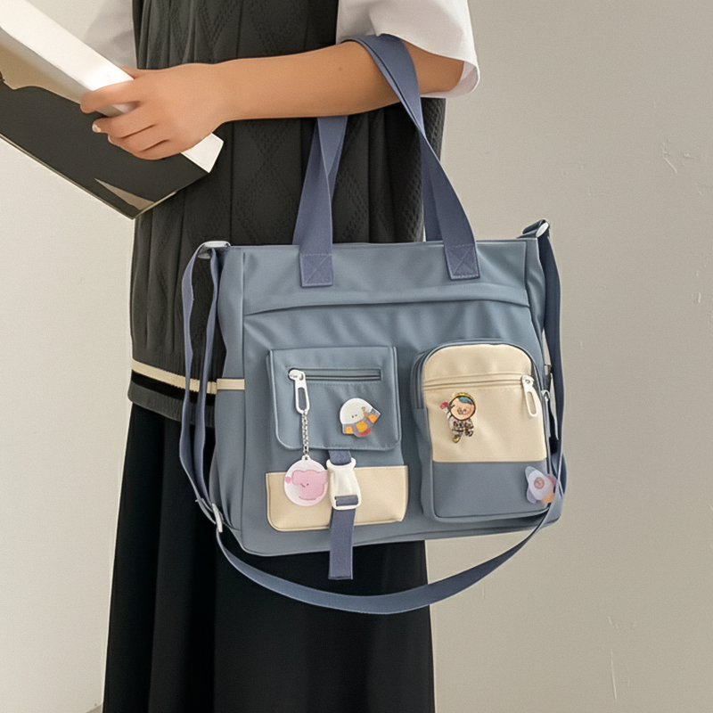 Geanta asta practică încape toate lucrurile mele de desen și îmi ține caietele în siguranță față de apă. Îmi place și că pot regla lungimea curelei.