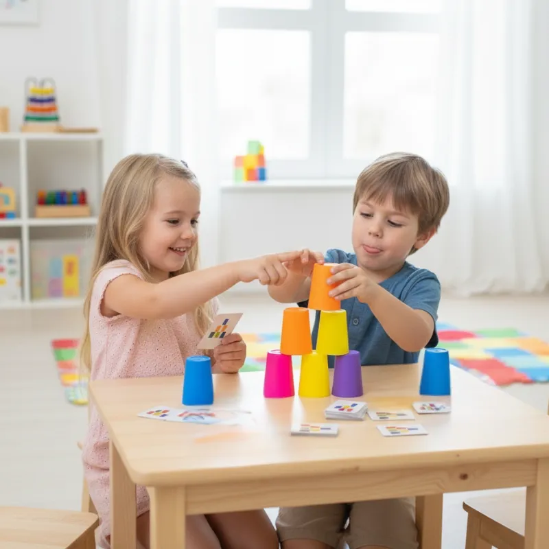 Am luat acest joc de stivuire a cupelor pentru copii și a devenit jocul preferat pentru serile în familie. Cupele colorate îi fac pe toți să râdă și să gândească rapid.