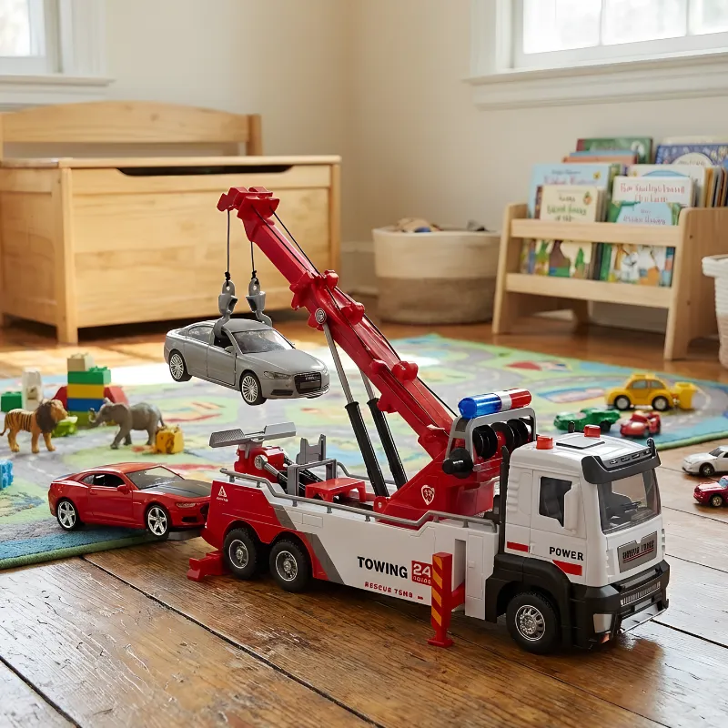 Fratele meu și cu mine adorăm să jucăm misiuni de salvare cu această mașină de tractat, mai ales cu cârligele cool și luminile strălucitoare. Ușile se deschid și chiar e distractiv de folosit!