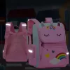 Copilul meu adoră designul cu unicorn! Este un loc pentru prânz, temă și sticla de apă. Îi place să-l poarte în fiecare zi.