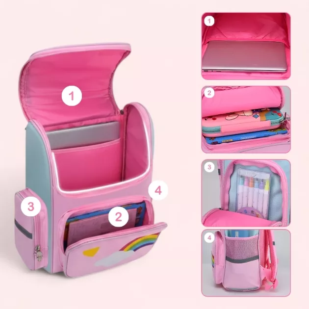 Fiecare drum spre școală devine distractiv și lipsit de griji cu acest rucsac. Buzunarele inteligente organizează totul pentru o dimineață ușoară și plăcută. Fiecare detaliu aduce zâmbete de durată pentru tine și copilul tău.