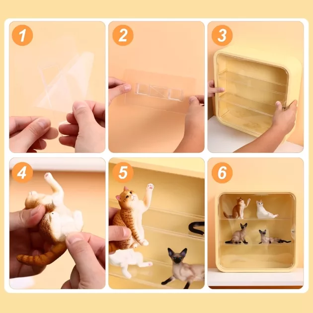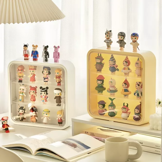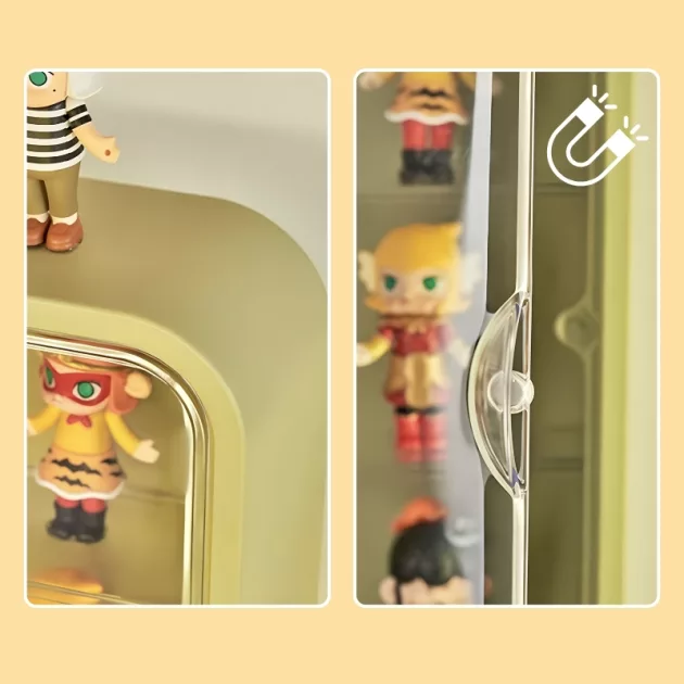 Interior personalizabil - Rafturile ajustabile oferă opțiuni flexibile pentru expunerea figurinelor și jucăriilor de diferite dimensiuni. Asamblarea modulară le permite utilizatorilor să creeze o aranjare unică pentru colecția lor. Fiecare obiect are locul potrivit, pentru un aspect atrăgător și bine organizat.
