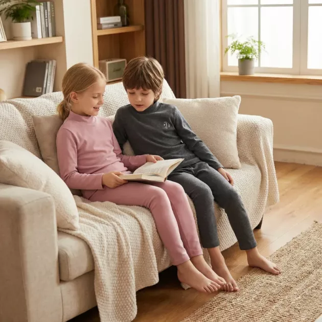 Set Pijama Băieți-Fete cu Pantaloni Lungi călduros, din Bumbac