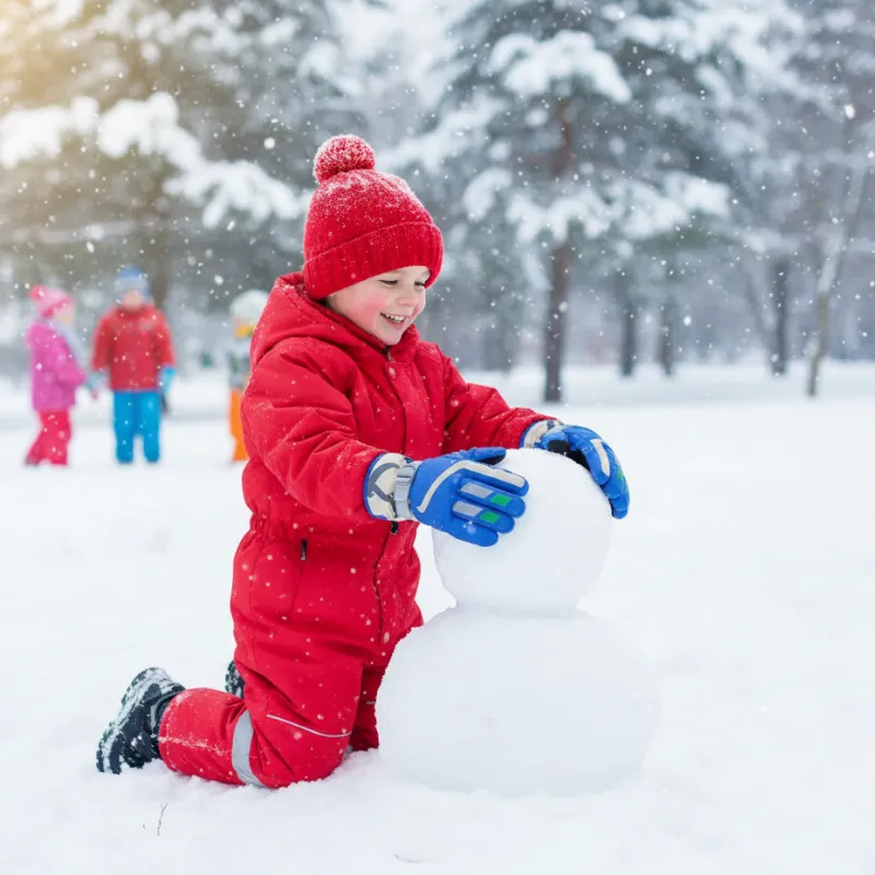 Suprafață de prindere sigură - Palmele antiderapante îi ajută pe cei mici să țină obiectele ferm în orice activitate. Bețele de schi, săniile sau bulgării de zăpadă rămân mereu acolo unde trebuie.