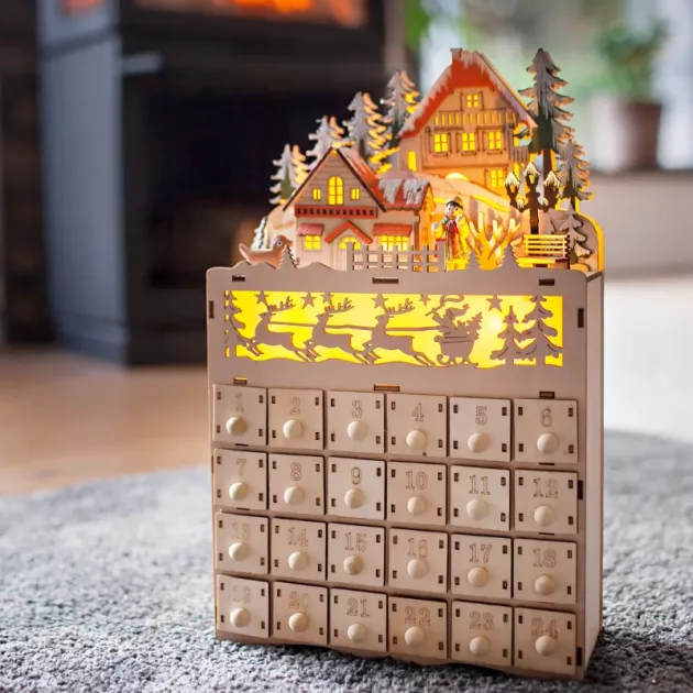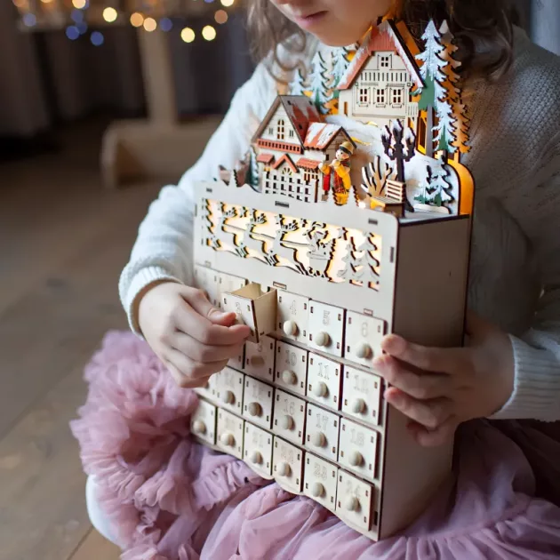 Cutia de Advent este magică! Copiii mei se trezesc entuziasmați să își verifice sertarul în fiecare dimineață. Luminile calde fac livingul nostru să pară confortabil și festiv.