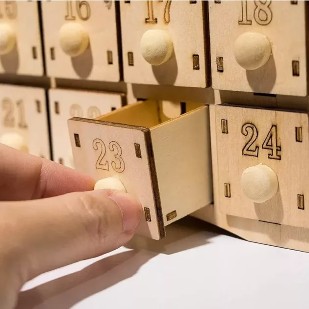 O modalitate foarte frumoasă de a număra zilele până la Crăciun. Umplem sertarele cu cadouri mici. Îmi place că îl putem refolosi ani la rând.