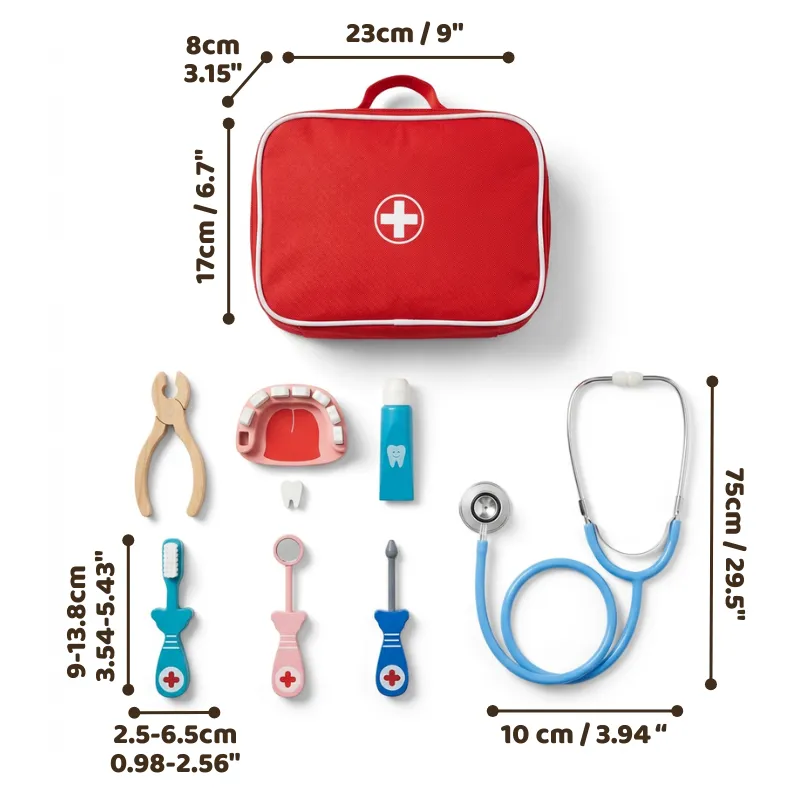Stimulează creativitatea și încrederea în timp ce copilul tău explorează roluri de îngrijire. Fiecare piesă din lemn se simte sigură și confortabilă în mâinile mici. Privește-l cum exersează empatia și comunicarea în fiecare sesiune de joacă. Acest set ajută la ușurarea vizitelor la doctor, făcând medicina mai distractivă.