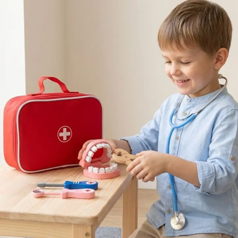 Set de joc de rol Doctor din lemn, jucărie educativă pentru copii