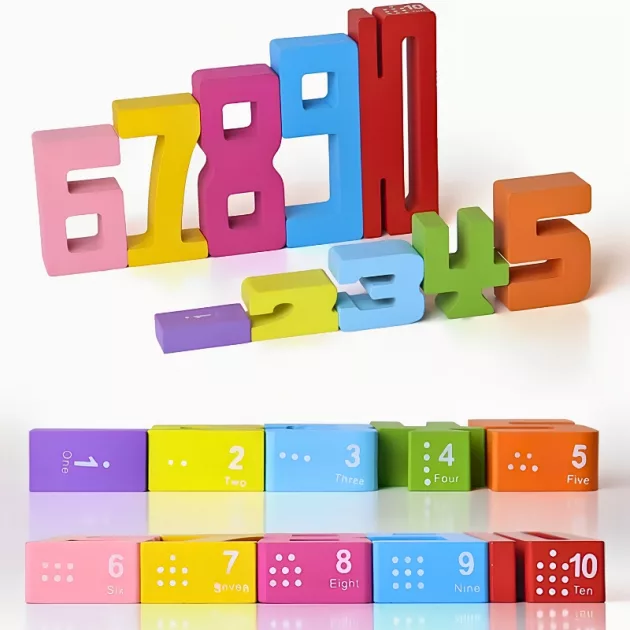 Recunoaștere a numerelor și formelor - Fiecare bloc are o amprentă clară, bine conturată. Diversitatea designurilor ajută la familiarizarea cu conceptele numerice de bază. O modalitate interactivă de a consolida abilitățile cognitive prin joc.
