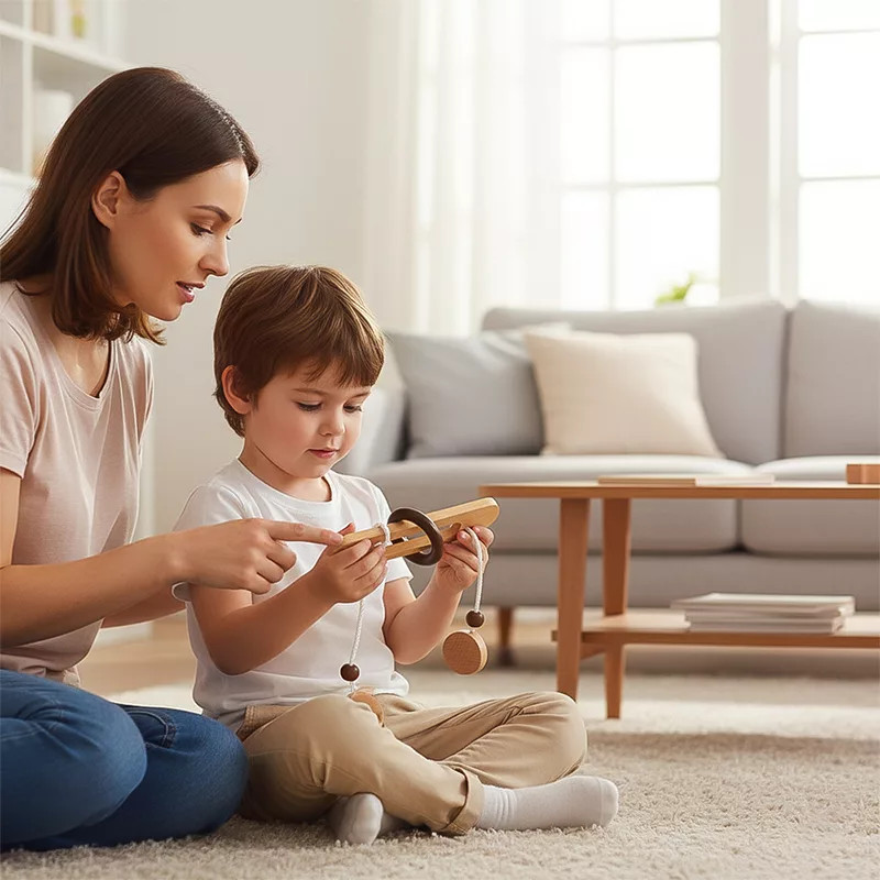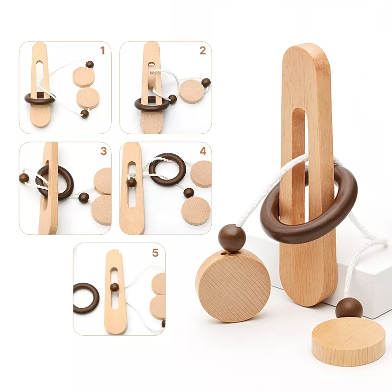 Joc Puzzle din Lemn cu Inele pentru Copii