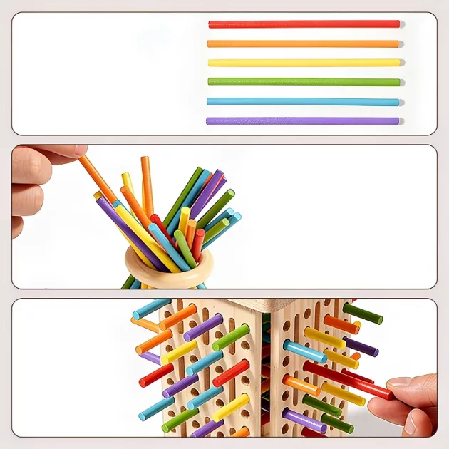 Copiii iubesc noile provocări iar jocurile prietenoase aduc râsete. Acest joc de construit turnuri din bețe de lemn încurajează concentrarea și mânuirea atentă la fiecare rundă. Fiecare tur aduce distracție colorată, invitând la lucru în echipă și competiție prietenoasă. Transformă momentele de învățare în experiențe ușoare pentru familii, acasă.