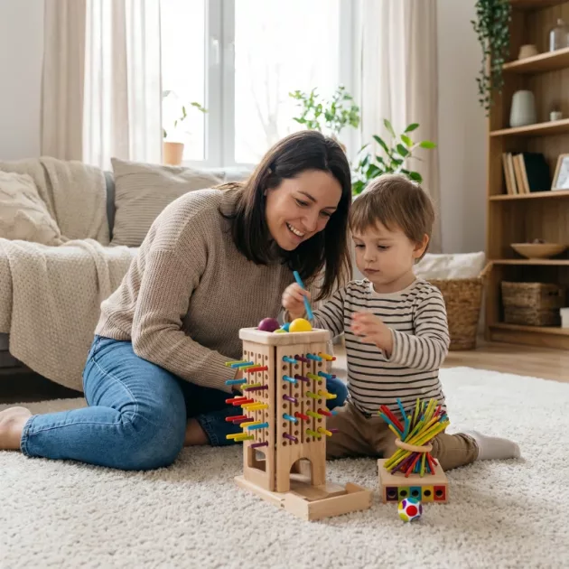 Joc Turn din Bețe de Lemn – Distracție în Familie, Jucărie Montessori