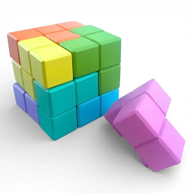Blocurile colorate îi atrag fiicei mele atenția de fiecare dată. Îi place să se întrecă pe ea însăși ca să îl rezolve din ce în ce mai repede.