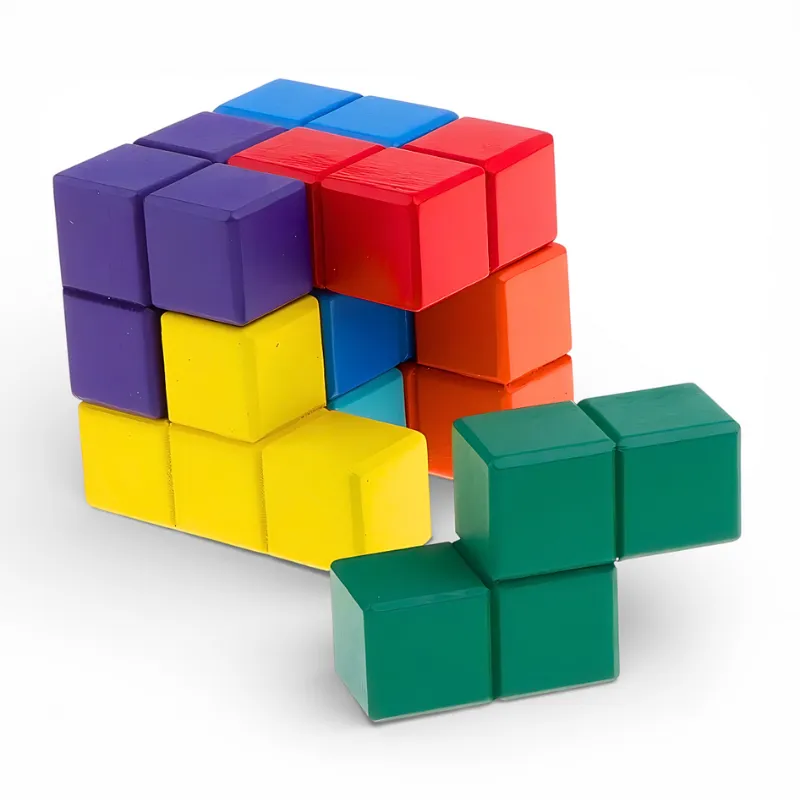 Puzzle Cub Tetris din Lemn Montessori Senzorial pentru Copii
